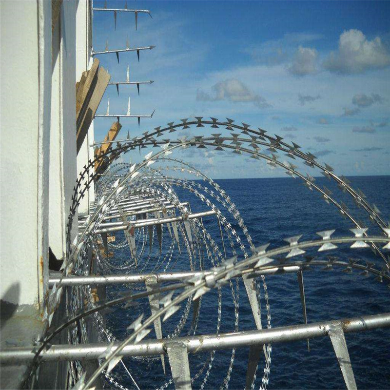 噴塑刀片刺繩特色涂層外觀質(zhì)量優(yōu),附著力及機械強度強;噴涂施工固化時間短;涂層耐腐耐磨才能高出許多。噴塑刀片刺繩有如此多的長處,因而已受廣大客戶所喜愛。噴塑刀片刺繩特色被廣用于牧場鴻溝、鐵路、高速公路的阻隔防護以及園林公寓,單位,監(jiān)獄,哨卡,邊防等的圈禁防護。