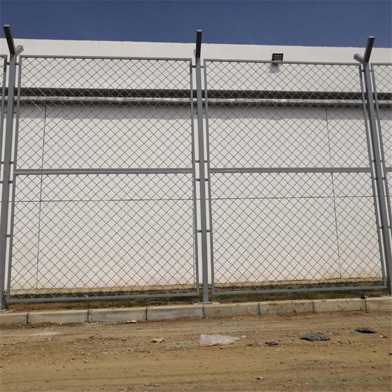 2、監獄鋼網隔離網、刀刺網設計要求整體連貫一致,框網方正,對角線誤差不大于2cm。監獄鋼網隔離網安裝離地距離5-8cm,框網與立柱一般采用螺栓固定邊耳式連接,網片每邊與立柱連接點不少于六處。