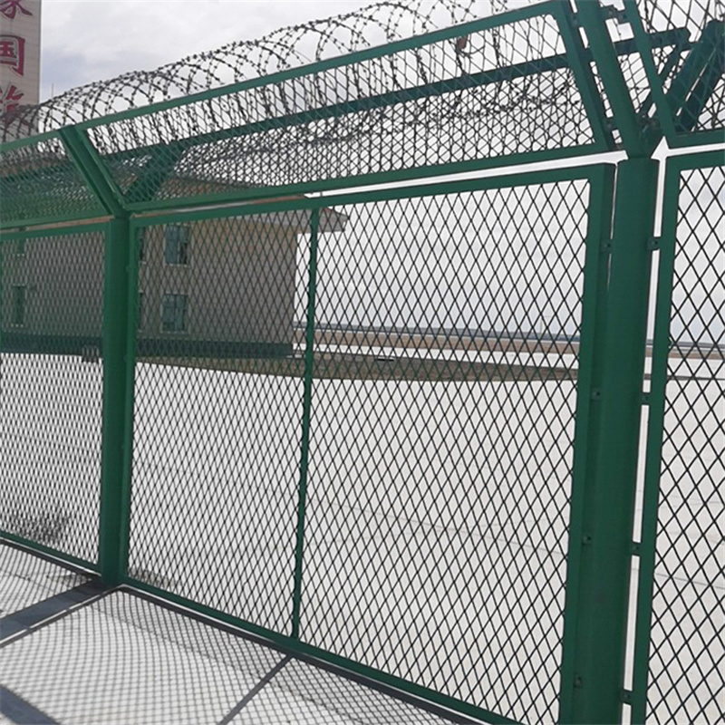 監(jiān)獄鋼網(wǎng)墻監(jiān)獄建設(shè)不可缺少的部分,它可以用來加高圍墻高度,防止服刑人員攀爬,也因其透視性好、安全度高,可以作為巡視墻使用,便于對(duì)服刑人員的監(jiān)管,也可以地面安裝,比如生活區(qū)、安檢區(qū)等,一般采用低碳鋼絲焊接成網(wǎng)片,熱鍍鋅刀刺網(wǎng),Y型矩形鋼立柱組合而成,Y型矩形鋼立柱頂端可帶V型網(wǎng)加強(qiáng)筋網(wǎng)也可不帶,帶上v型加筋網(wǎng)可增加鋼網(wǎng)墻的抗沖壓力。