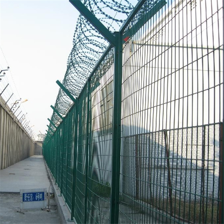監獄鋼網墻又稱作“Y型安全防御護網”,是由V型支架立柱,加強型焊接片網,安全防盜連接件和熱鍍鋅刀片刺籠組成強度和安全防御性級別很高。