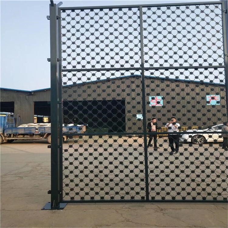 梅花刺網又稱監獄護欄網或監獄隔離柵,主要是采用高強度的刀片刺網與普通防護網的結合,由V型支架立拄,加強型焊接片網,安全防盜連接件和刀片刺網組成.刀片刺網是一種新型防護網,由銳利尖角鍍鋅鋼板或不銹鋼薄板做刀片,鋼絲做芯線組合而成的防護器材梅花刺網又稱高安全防護網、監獄防護網,是用氬弧焊將梅花形刺片焊接在美格網的節點上,形成刺形保護,有效的防止了手握腳攀,為此該鋼網墻在監獄或看守所使用。