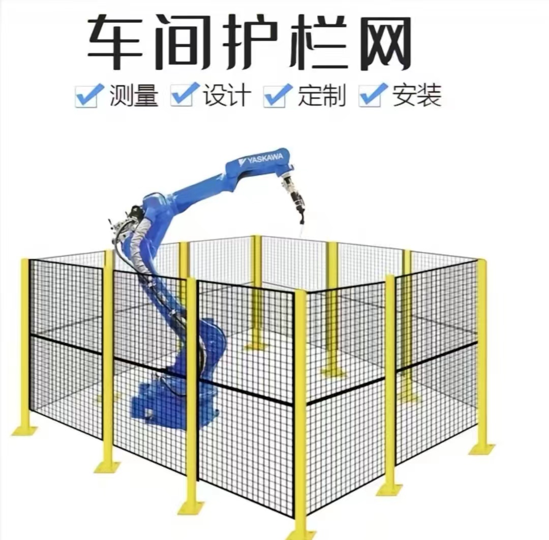 機器人護欄網(又稱機器人防護網、設備護欄網、流水線防護網等)是一種專為現代化工業車間設計的安全防護產品,旨在為機器人作業區域提供物理隔離,確保工作人員和設備的安全。隨著工業自動化水平的不斷提升,機器人在生產線上的應用越來越廣泛,由此帶來的安全風險也日益增加。機器人護欄網通過高強度的物理障礙,有效防止工人誤入機器人作業區域,同時也保護機器人免受外界干擾,確保生產流程的順暢和安全。