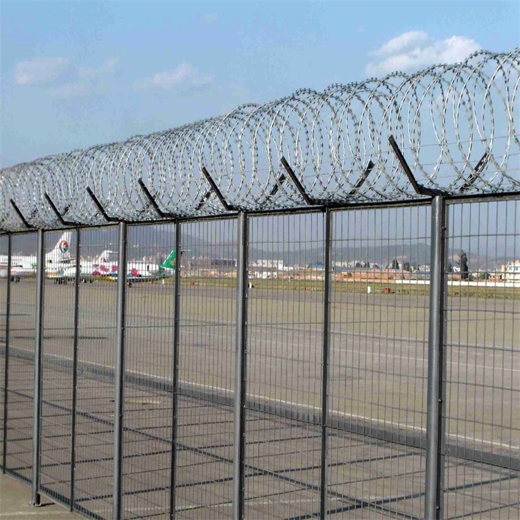 刀片刺網由熱鍍鋅鋼板或不銹鋼薄板沖壓出尖銳的刀片狀,高張力鍍鋅鋼絲或者不銹鋼絲做芯線組合而成的阻絕器材。由于刺網造形獨特不易觸摸,因而能達到極好的防護隔離效果。產品的主要材質有鍍鋅板和不銹鋼板。