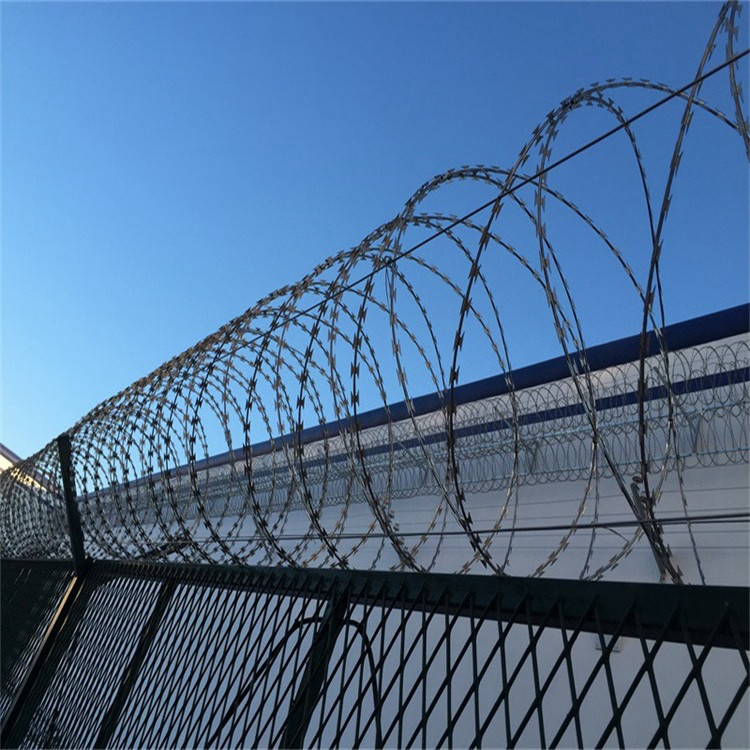 ? 逐片拼接網片,相鄰網片搭接寬度≥50mm,用專用卡扣或焊接固定,確保網面平整無松動,頂部若帶刀刺網,需與立柱頂部支架牢固焊接,刀刺間距≤100mm。