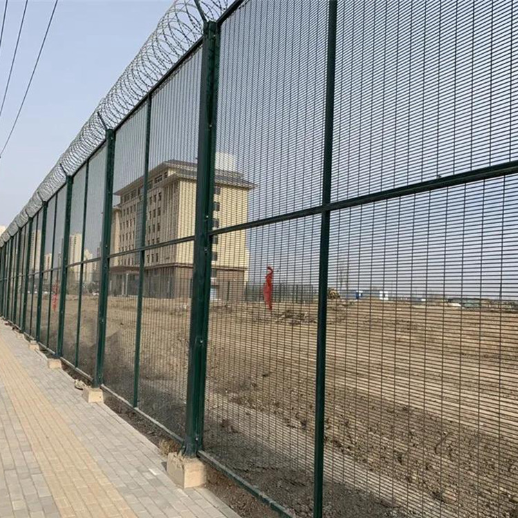 在安全防護層面,358密紋網采用12.5mm×76mm或12.5mm城府100mm的細密網孔設計,有效杜絕攀爬、鉆越,防止違禁物品傳遞,從物理結構上阻斷非法突破路徑,防護精度遠超普通隔離網。防破壞能力方面,網片選用高強度低碳鋼絲,經冷拔、焊接、熱鍍鋅等多道工藝加工,抗拉強度達300MPa以上,能抵御剪切、沖擊等暴力破壞,焊點牢固無虛焊,整體結構穩定性極強。