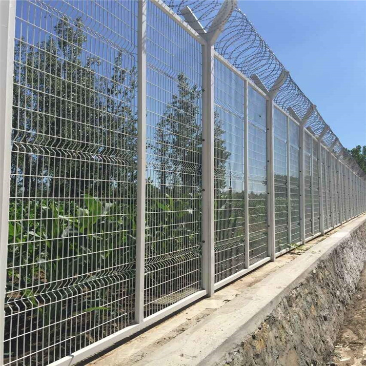 監獄生活區鋼網墻又稱作“Y型安全防御護網”,監獄鋼網墻,監區圍網,監獄金屬隔離網墻價格,蛇腹型刀片刺網主要采用高強度鐵絲網片與蛇覆式刀片刺網和防盜連接件組合而成,防腐形式有電鍍、熱鍍、噴塑、浸塑。我廠生產的監獄生活區鋼網墻具有美觀、大方、防腐性好、易保養、防攀爬能力強。