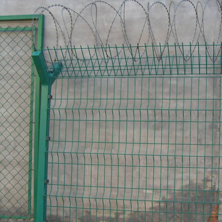 在整體本錢增加不多的同時,使網面強度和美感顯著增加,是目前國內外受歡送之一。機場隔離柵具有很好的抗老化、抗曬、耐候等特性。其產品外型美觀、花色多樣,既起到圍欄作用,又起到美化作用。由于具有平安性高、防攀爬才能好,網片銜接方式采用特制SBS緊扣件,有效避免人為的毀壞性拆卸,橫向四道折彎增強筋,使網面強度顯著增加。