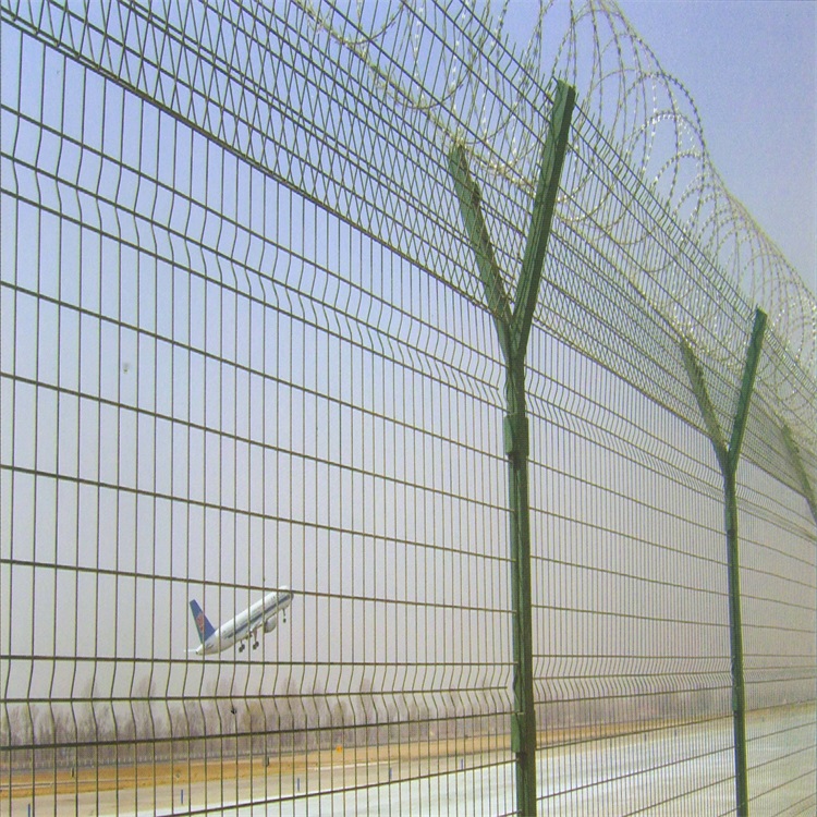 機場隔離網又稱之為"機場圍欄網",這是一種采用低碳鋼絲焊接而成的網片+立柱+刺鐵絲(可選)+斜撐(可選)銜接而成的護欄網產品。機場隔離柵具有美觀、大方、防腐性好、易頤養、防攀爬才能強。機場圍網主要適用于機場四周的隔離防護,美化及防翻越工程。