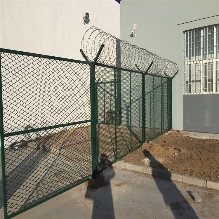 監(jiān)獄隔離網(wǎng)大概分為三種類型,一種是在普通隔離網(wǎng)的基礎上將立柱改良成Y型,增加了不宜觸摸的刀刺網(wǎng),增強其防攀爬效果;第二種是密紋隔離網(wǎng),顧名思義網(wǎng)格非常密集,手指無法穿透網(wǎng)格,沒有借力點,自然就無法攀爬,此種隔離網(wǎng)還有一個優(yōu)點就是,因為網(wǎng)格密集,不只手指無法穿透,就連剪絲鉗也不能剪斷,可以有效防止隔離網(wǎng)被破壞;第三種是近年來新出的梅花刺隔離網(wǎng),隔離網(wǎng)的網(wǎng)片是菱形孔的美格網(wǎng),在每個鋼絲相連接的焊點上焊接梅花刺片,刺片鋒利,也就無法攀越。
