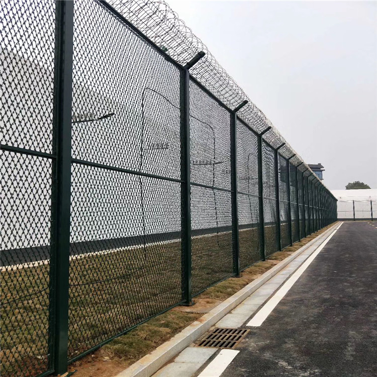 監管區域刺絲隔離網和在監墻頂端安裝直徑0.5米蛇腹型刀刺網,刺繩隔離網要求采用直線型焊接刀刺網片,上附一層直徑1250px蛇腹型刀刺網(雙螺旋,含部分建筑屋頂)。網片采用日字加強型直線型刀刺網片,網片與立柱之間采用防盜螺栓貫穿式連接。以能夠阻止罪犯破壞或從監墻攀爬逃脫為標準。