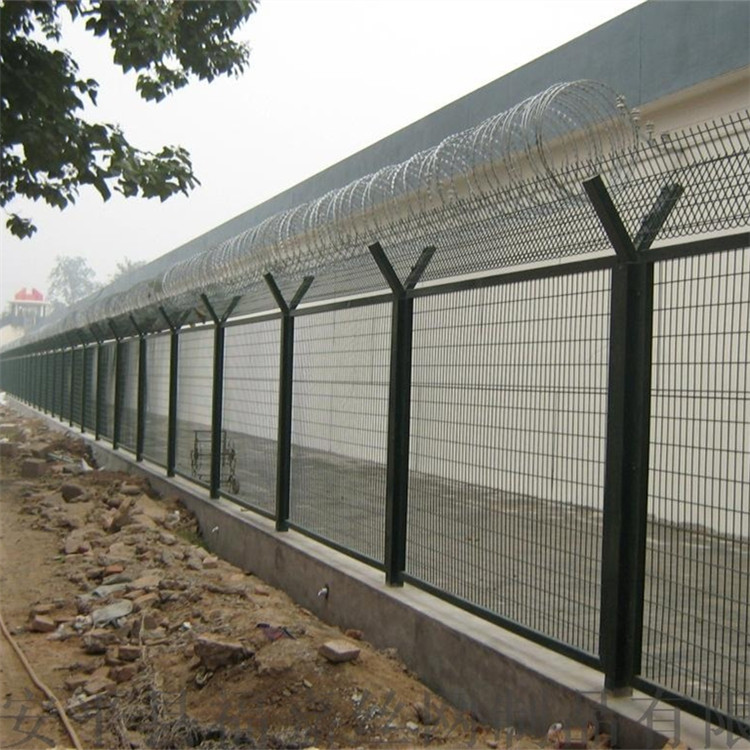 監(jiān)獄鋼網(wǎng)墻加高網(wǎng)材質(zhì)采用Q 235鋼材制作而成,該材質(zhì)具有韌性大,硬度高的特點,是制作防御隔離網(wǎng)的上等選材。鋼網(wǎng)墻加高網(wǎng)的編織特點具有結(jié)構(gòu)新穎、堅固緊密、網(wǎng)面平整、網(wǎng)孔均勻、防攀爬、防拆卸、防剪、抗腐蝕性強等特點。顏色可根據(jù)各監(jiān)區(qū)的制作要求定制,常規(guī)顏色有草綠色、墨綠色、白色、灰色,鋼網(wǎng)墻一般頂端都設(shè)有V型支架與立柱焊接,材料通常選擇和立柱同等材料或者稍小規(guī)格材料搭配使用。V型型支架的加裝是為了將蛇腹形刀刺網(wǎng)固定在隔離網(wǎng)頂部,從而有效的增加監(jiān)區(qū)隔離網(wǎng)的防攀爬性和安全性。