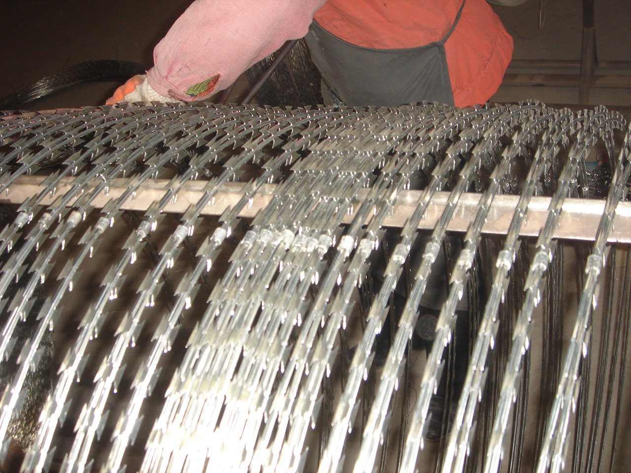 螺旋刀刺網(wǎng)是近年來新型的安全系數(shù)更高的監(jiān)獄隔離網(wǎng),其網(wǎng)片上由銳利尖角鍍鋅鋼板或不銹鋼薄板做刀片,高張力鋼絲做芯線組合焊接而成的。鋒利的刀型刺既美觀又讓人不寒而粟。起到了很好的阻嚇作 用可以有效的防止攀爬。主要用于監(jiān)獄外隔離網(wǎng)、監(jiān)獄內(nèi)隔離網(wǎng)、監(jiān)墻上隔離網(wǎng)、巡邏通道隔離網(wǎng)、車行通道、監(jiān)獄鋼網(wǎng)墻等等。安裝后整體牢固、威嚴(yán)肅穆,可起到超強(qiáng)的震懾力!