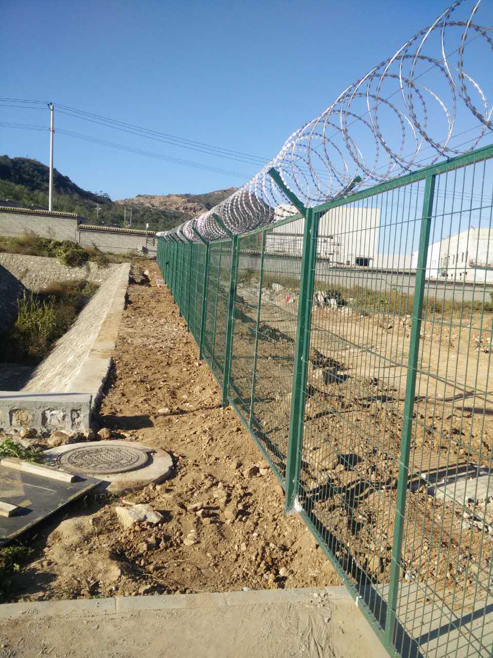 監獄圍欄是一種新型防護網,由銳利尖角鍍鋅鋼板或不銹鋼薄板做刀片,鋼絲做芯線組合而成的防護器材該產品具有嚇阻、防翻越等效果,材質堅硬,高強度,高張力,造型設計獨特,不宜觸摸,因而能達到極好的防護隔離效果。還具有施工簡便,經濟實用等優點。
