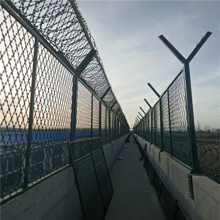 9.監獄防攀爬護欄網的網眼有V形加強筋,可以大大提高圍網的**沖孔能力。
