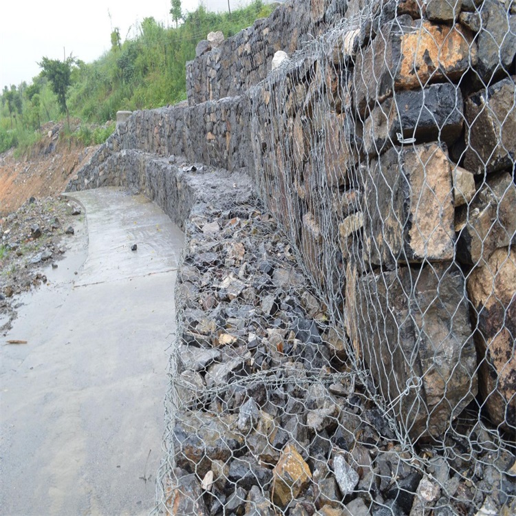 邊坡石籠防護(hù)網(wǎng)是使填石固定就位的鐵絲或聚合物絲的網(wǎng)格式制作物。鐵絲籠是由鐵絲編織的網(wǎng)格或是焊接而成的結(jié)構(gòu)物。這兩種結(jié)構(gòu)可所以電鍍的,編織的鐵絲箱可別的涂上PVC.用抗風(fēng)化的鞏固石塊作填料,它在石箱或石籠沉排中不會(huì)因磨蝕而很快破碎。裝有不同類型的塊石的石籠有不同的特性。多角的塊石能互相很好地聯(lián)鎖在一起,用其填裝的石籠不易變形。