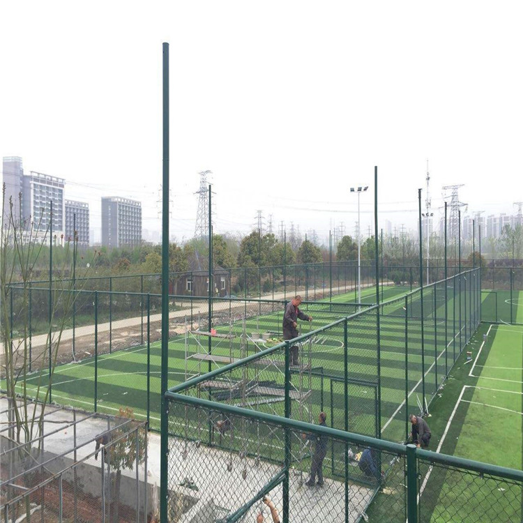 組裝套管式球場圍網的卷網是可活動的,可根據寬度靈活調節所需尺寸,安裝時盡量把卷網拉緊,這樣網面平整且牢固。